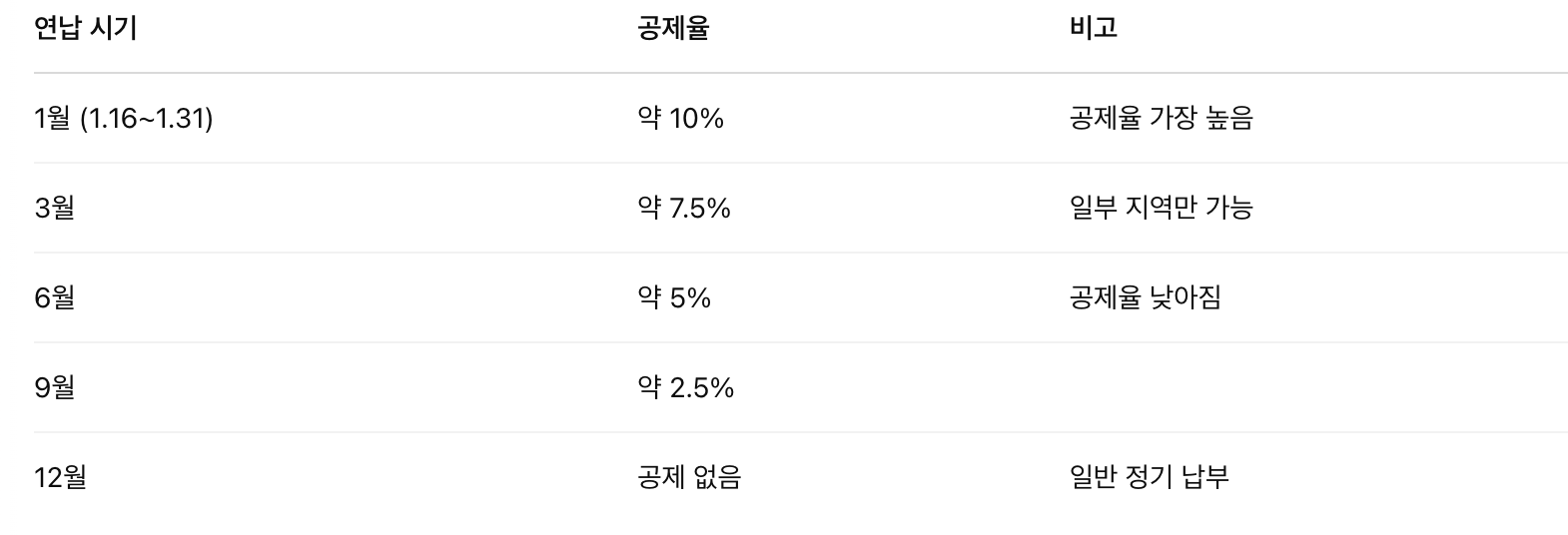 3월, 6월, 9월에도 연납신청은 가능하지만, 할인율은 각각 점점 줄어들게 됩니다.