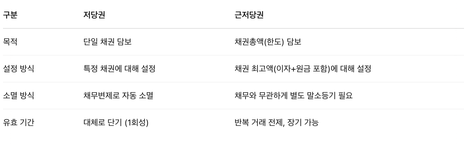 많은 분들이 근저당권과 저당권을 헷갈려 하시는데요, 그 차이는 다음과 같습니다.